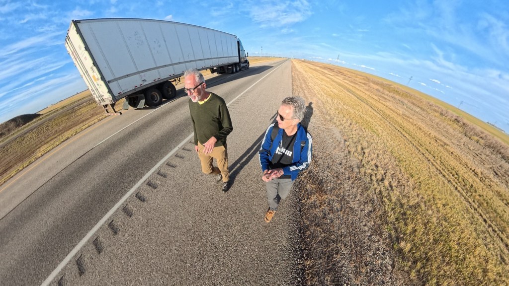 It was such a pleasure to talk with Ken (aka Dr. Ken Wilson). I’ve known Ken for a couple decades and I have seen how walking has become a vital and creative component of his life. He’s been very generous in sharing the sources of his walking knowledge, and introduced me to a range of people, texts, and media on walking. We talked about his 2025 book Walking The Bypass, published by University of Regina Press, his forthcoming book Walking Well, and about some of his other long-distance walks. I also joined Ken for a walk along a part of the Regina Bypass, which provides the route for Walking The Bypass.